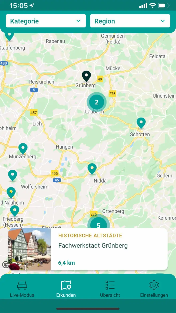 Lass dich entweder direkt zu einem Zwischenstopp inspirieren oder merke dir das Ziel für einen späteren Besuch vor. Alle Ziele kannst du auch von zu Hause oder als Beifahrer unterwegs in der Karten- und Listenansicht nachlesen. Zudem findest du viele Veranstaltungshighlights in den Detaileinträgen der App.